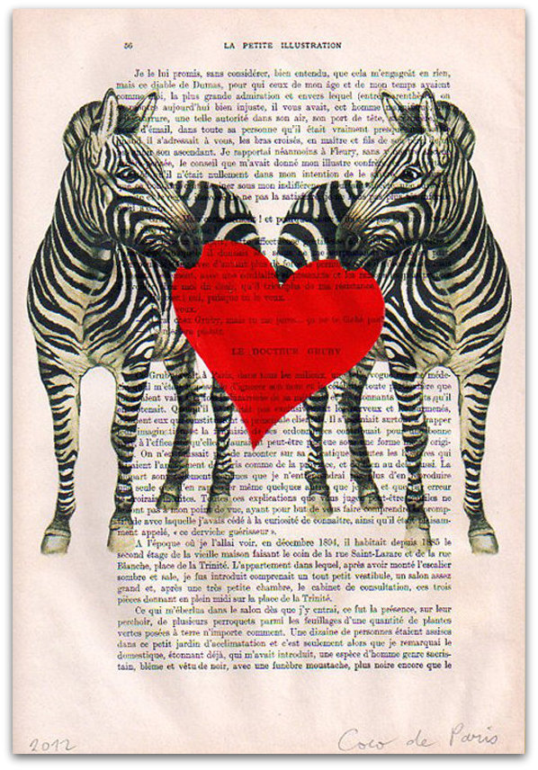 Coco de Paris, a mixed media designer, paints charming and humorous creatures on antique french paper. This series in particular was illustrated on “La Petit Illustration,” a weekly French literary journal that published plays, novels, and short stories in the 1920s. So in addition to owning an incredibly unique piece of art, you’ll own a little bit of French history.